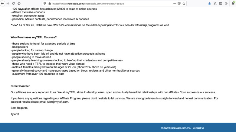 Trusted TEFL Reviews decided to look further into this and discovered the company with whom MyTEFL.com has an affiliate agreement: