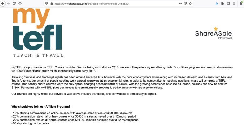 One other amazing example is the current trend for MyTEFL affiliates to create mirror image “The Best 5 Online TEFL Courses” websites. MyTEFL and their “group” always feature at the top. And of course, the website is jam-packed with affiliate links – with people low on funds writing such rubbish as either never have taken any courses on the list, or who have taken one and then seen a way to further their world travels by earning money through the MyTEFL affiliates program. #misleading.