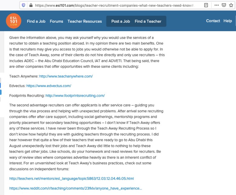Glad you found solace over at Teach Away. As a recruitment agency, we have received excellent reports of their customer services and job placement/support results.